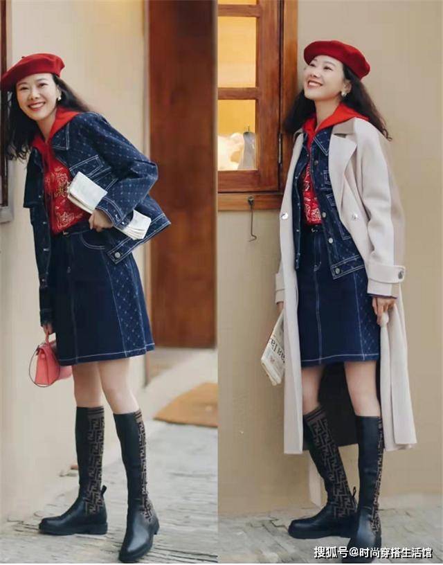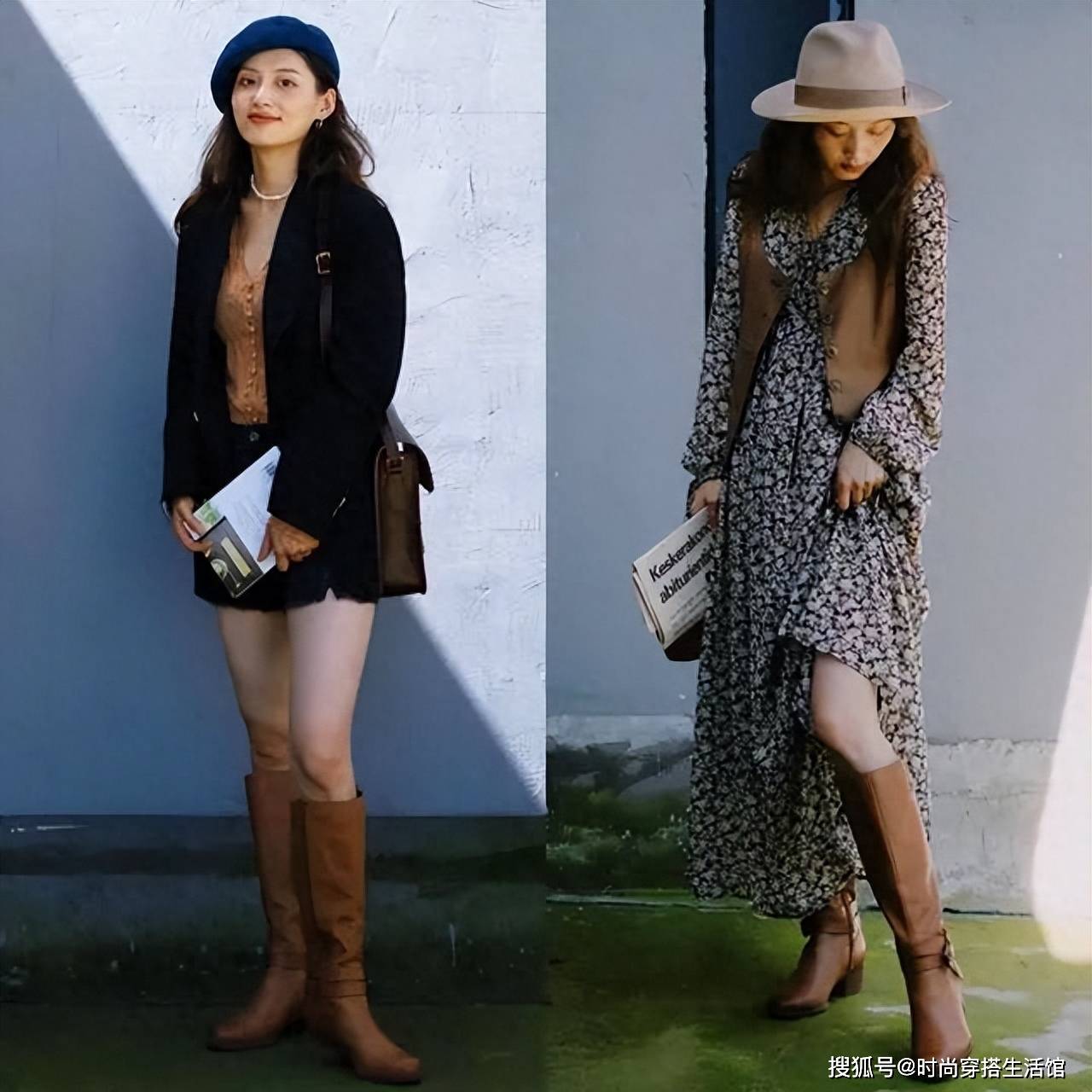 如果喜欢更加高级一些的穿法,就可以选择就可以选择与裙子相同色系的靴子,但要注意尽量选择“同一色系,但不同深浅”的两种颜色,看起来会更加高级有层次。另外我们还可以尝试选择大地色系或是黑色系的靴子,加强造型的色彩层次,看起来会更加抓人眼球。