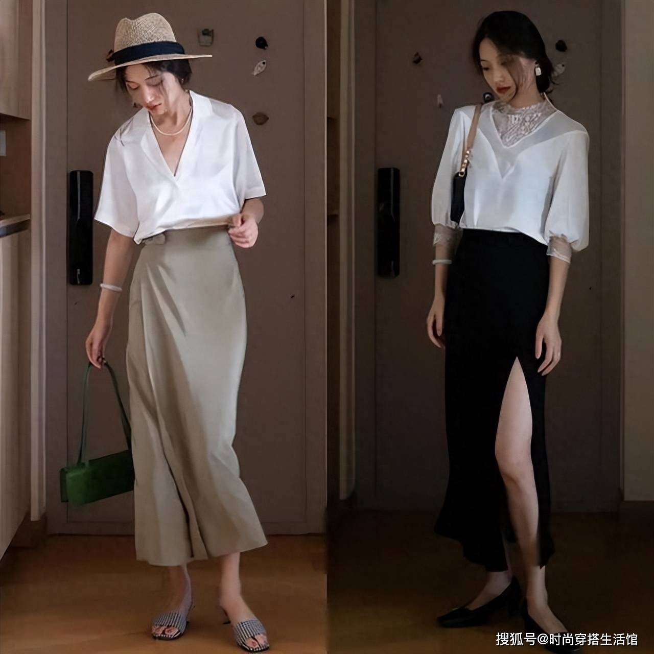 对于很多身材比例不均匀或五五分身材的姐妹们来说,比例的塑造可以说是整体穿搭的核心。而在用裙子做搭配时,建议大家遵循“上短下长”拉高腰线的原则,将上下身的比例进行分割,不仅能优化你的身材,还能打造出大长腿的效果。