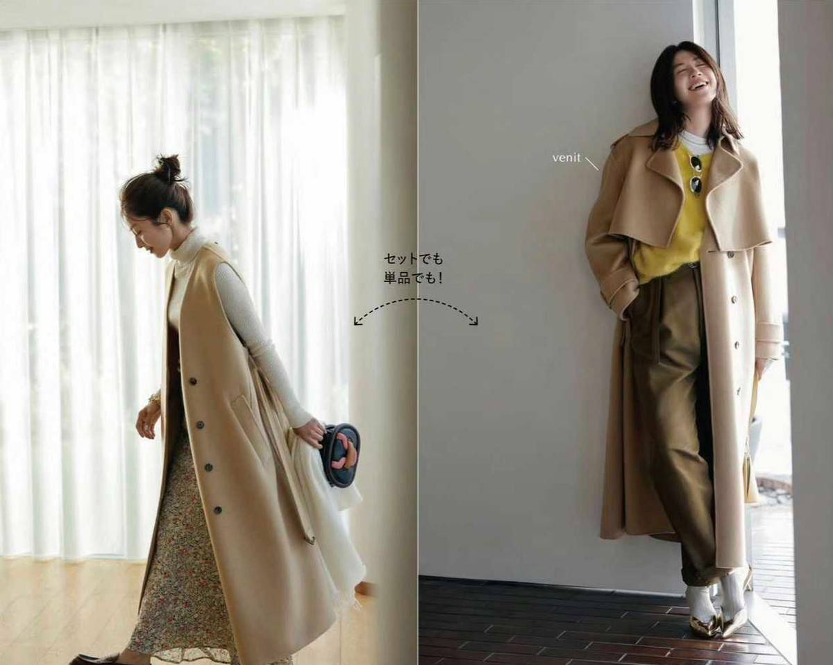 半身裙总是能够符合女性想要穿的有气质的需求,与此同时,在外套的选择上,大家不妨利用长大衣进行组合,十分的方便。