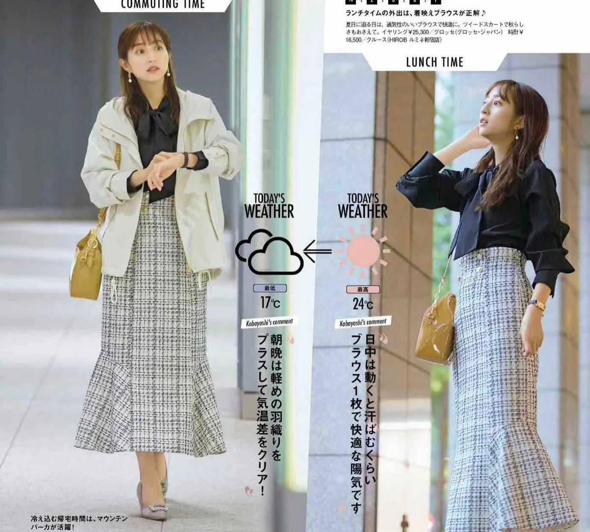如果自己的身材轮廓不是特别的曼妙,建议大家可以尝试一下稍微宽松一点的裙子,气温降低,搭配打底裤,也不会显得臃肿。