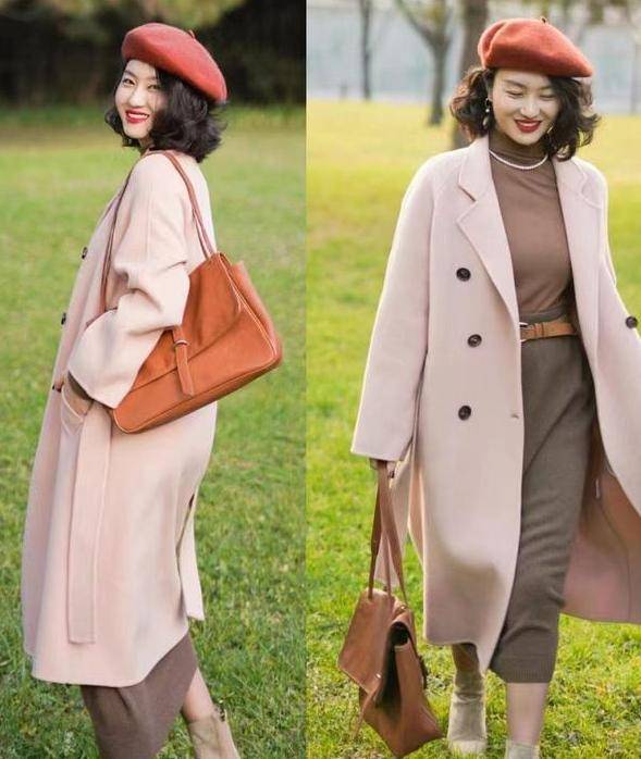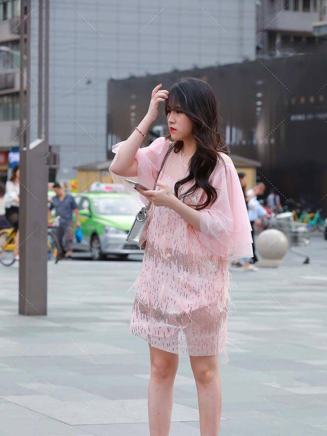 街拍:成熟风衣服也有粉色,粉色连衣裙就很不错,搭配高跟鞋就行