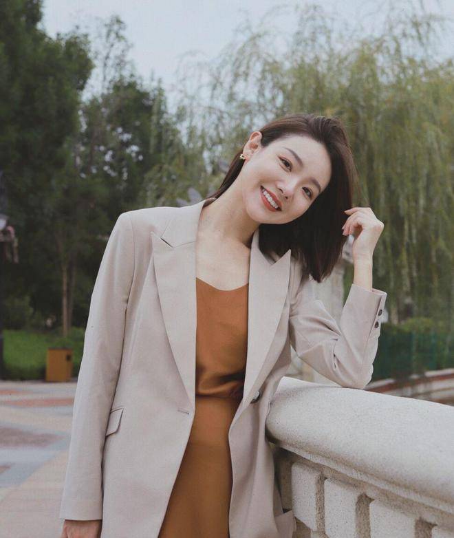 如果我们选择的西装颜色比较简单,那么内搭的选择面会更广一些。大家可以自由的在里面搭配上自己喜欢的颜色,让造型的色彩更加丰富。像这位博主选择的连衣裙就是绿色的,虽然不是非常亮丽的绿色,但这样的色彩反而更显白,也不容易翻车。