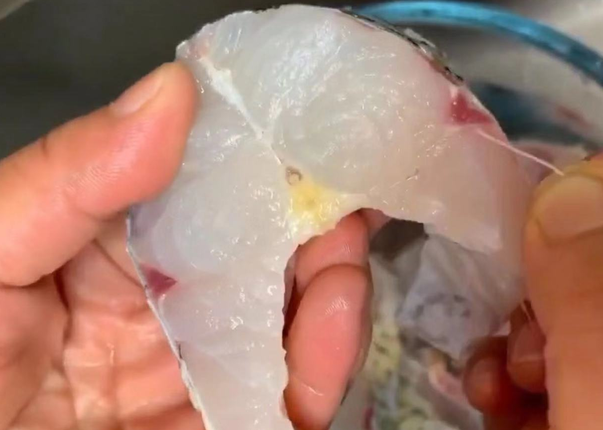 第二步:切好以后,这里给你们说一个小秘诀,可以让鱼快速去腥,切好的鱼肉加入一勺面粉,抓拌均匀以后,再一块一块去清洗,把鱼上的面粉,还有鱼肚子里面的黑色肚皮全部洗掉,这样洗出来的鱼肉怎么做都不会腥。