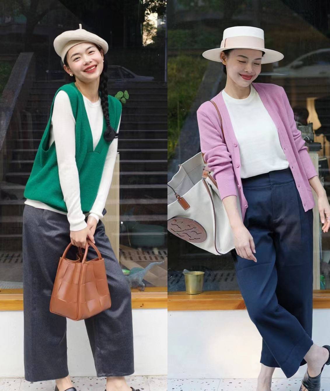 版型与腿部的联系是很紧密的,但并不是所有女性都有着笔直修长的腿型,再加上年龄可能带来发胖感,因此裤装选的宽松一些,才更有利于时尚感的发挥。