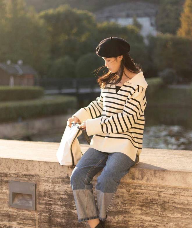 对于微胖美眉来说,要记住,横条纹排列得越密集,显瘦效果就越好,但大家也不能一味地去追求排列密集的横条纹,要将这个尺度拿捏好,这样才能穿出时尚感。