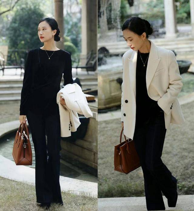 中年女性可能因为年龄的原因,对于色调会持以更谨慎的态度,她们不会以亮色为先,反而是运用基础色,来构造出每日穿搭。而在众多普通的色调中,想要塑造减龄感的女性,最应该避免的就是大面积的深色。如果没有白色短大衣的配合,就显得过于暗沉。