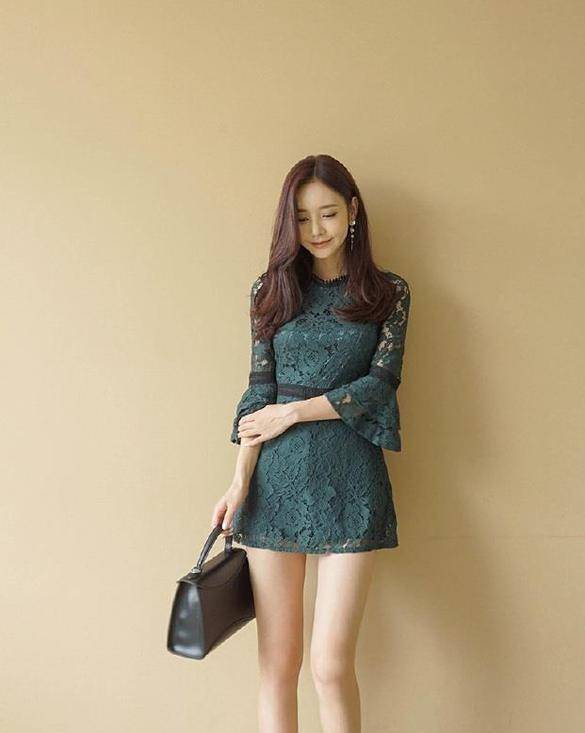墨蓝色的裙子看起来很成熟,圆领的设计虽然说没有露出好看的锁骨,但是配合短裙款式的长度,整体的造型很清爽,将小姐姐优雅的气质玲离尽致的展现了出来。小姐姐还是下了一定的小心机,腰间搭配的一条黑色腰带不仅突出腰线的同时,还达到了把腰线提高实现显高的效果,搭配高跟鞋一起穿更是显高的加分项。