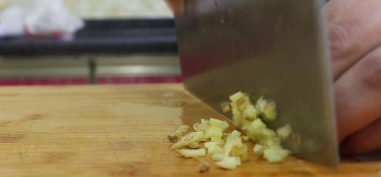 2、大蒜切蒜末,姜切姜末,葱切葱花,葱取白色部分,青蒜苗切小段,干辣椒切小段切块并放在一边;