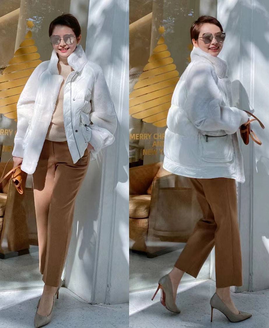 女性的审美标准或许不一样,但是短羽绒服确实有着无可取代的时尚感,可以在视觉上保留重心位于上半身,从而显得身姿更挺拔有型。上图这件白色羽绒服还结合了羊羔绒的材质,同色系的搭配不会形成突兀感,保暖性能也得到了完美的保证。