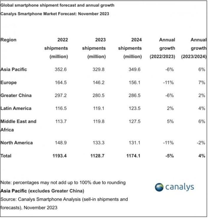 分析机构Canalys称2024年全球手机出货量有望增加,或达11.7亿台
