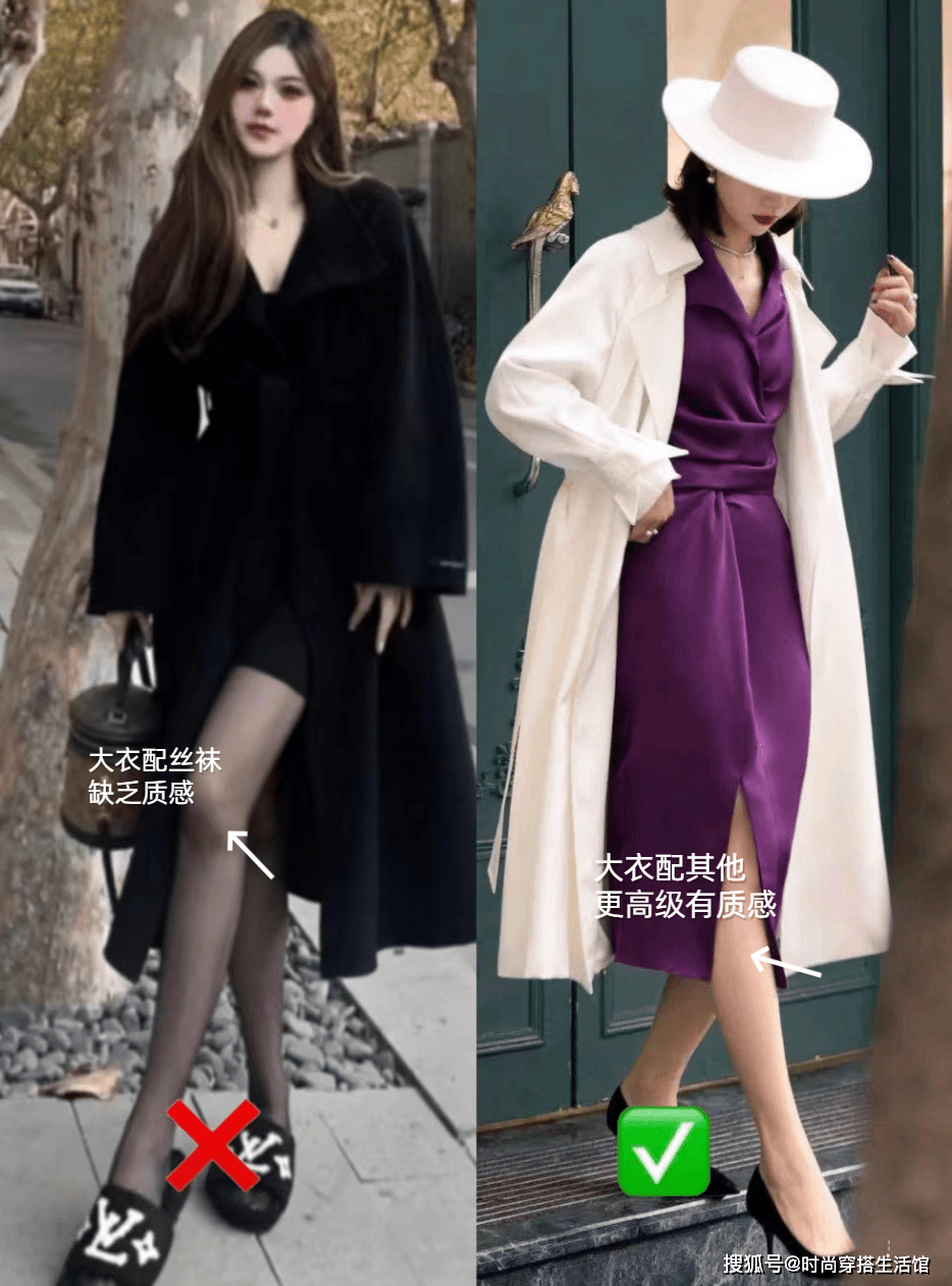 秋冬这么重要的保暖季节,可不能被丝袜毁了。真正能将大衣配丝袜或者十打底裤穿得好看的,是那些腰细腿长、九头身的美女。但对于普通人来说,尤其是腿型不直、还有腿粗腿短困扰的姐妹,过于紧身的打底裤和丝袜会放大缺陷,远离这两种单品才是正确选择。