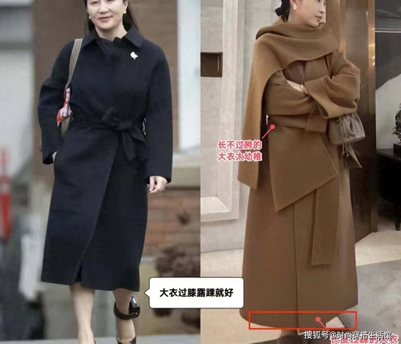 当硬挺的大衣遇上性感的丝袜,两个风格鲜明的单品搭配在一起,穿不好的话就容易显得突兀。加上丝袜本身带有性感属性,与中年女性的气质比较违和。另外,这种“上半身冬天、下半身夏天”的混搭造型,看起来就不够保暖,有了风度却没了温度。