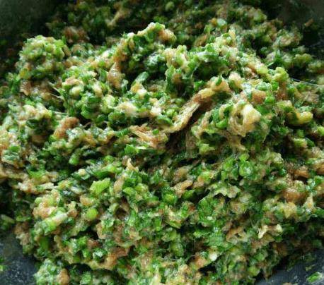 将肉馅腌一会儿,然后准备韭菜。最好事先将韭菜洗干净,检查一下水。毛孔表面的水分越少越好。切好后倒入锅中,加入适量食用油搅拌均匀。这将防止毛孔被水淹没。 ,最后将腌制好的肉馅倒入切好的韭菜中继续一个方向搅拌。将韭菜和猪肉馅混合均匀。还没包饺子就已经闻到了香味。这是一个非常成功的饺子。履行。