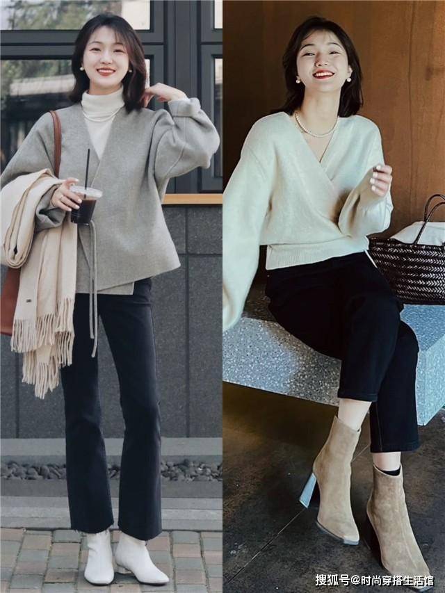 而对于小个子或上半身更具有优势的女生将搭配的亮点放在上半身,会让你的切尔西靴搭配更加出彩。可以通过服装的杂色和纯色对比,彩色和无彩色对比,明暗对比等配色方法去突出亮点。也可以通过单品的设计,例如流行款和基础款,露肤设计和包裹设计,配饰和简约款等去突出上半身。