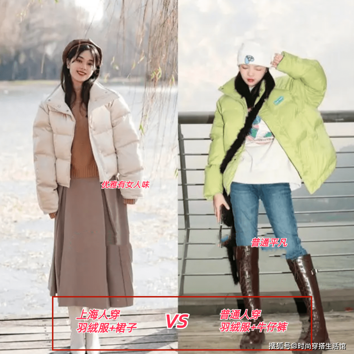 为了显得自己身材高挑,很多女生都钟爱羽绒服下面配''牛仔裤''的装扮,甚至为了展现''美丽冻人''的形象,更有女生只穿一条单裤,在冬天即使被冻得瑟瑟发抖也要维护完美的形象。其实,羽绒服配牛仔裤早就过时了,看上海女生''新式''搭配,显高显瘦漂亮极了。
