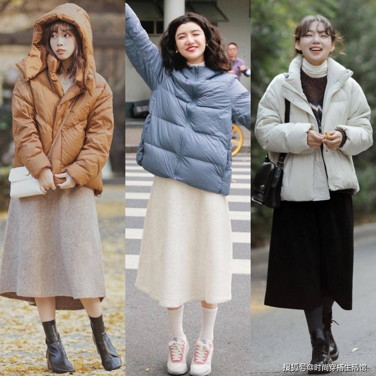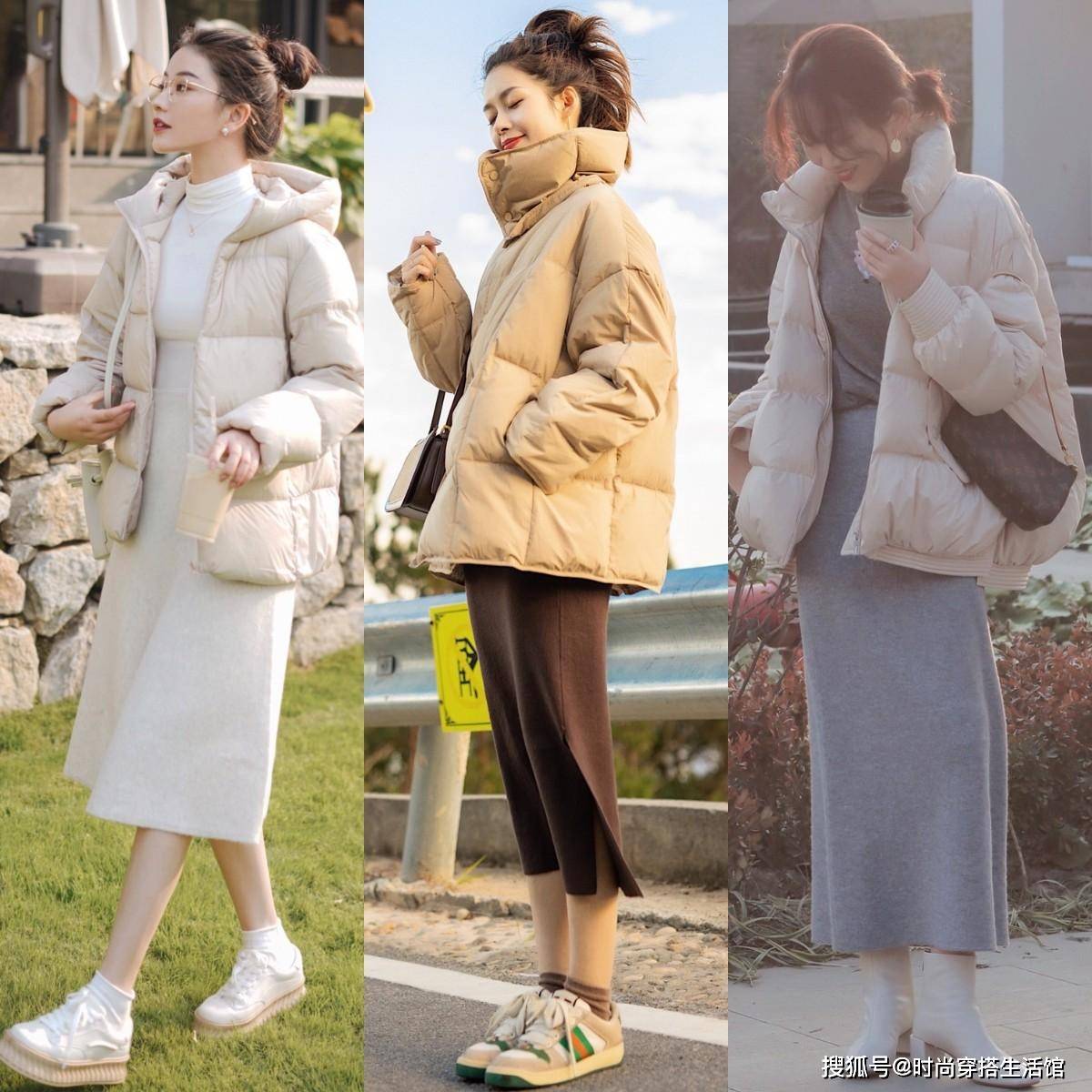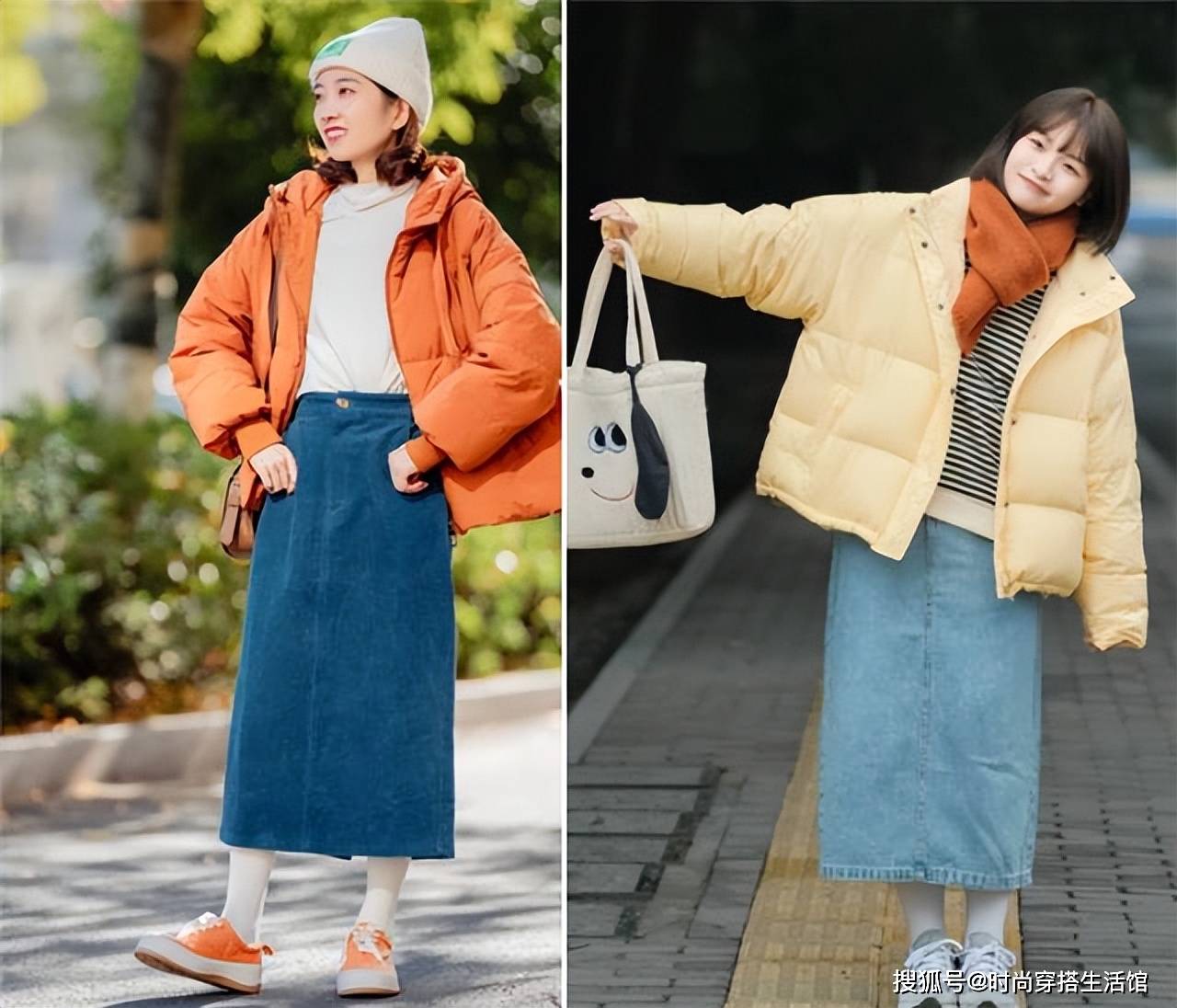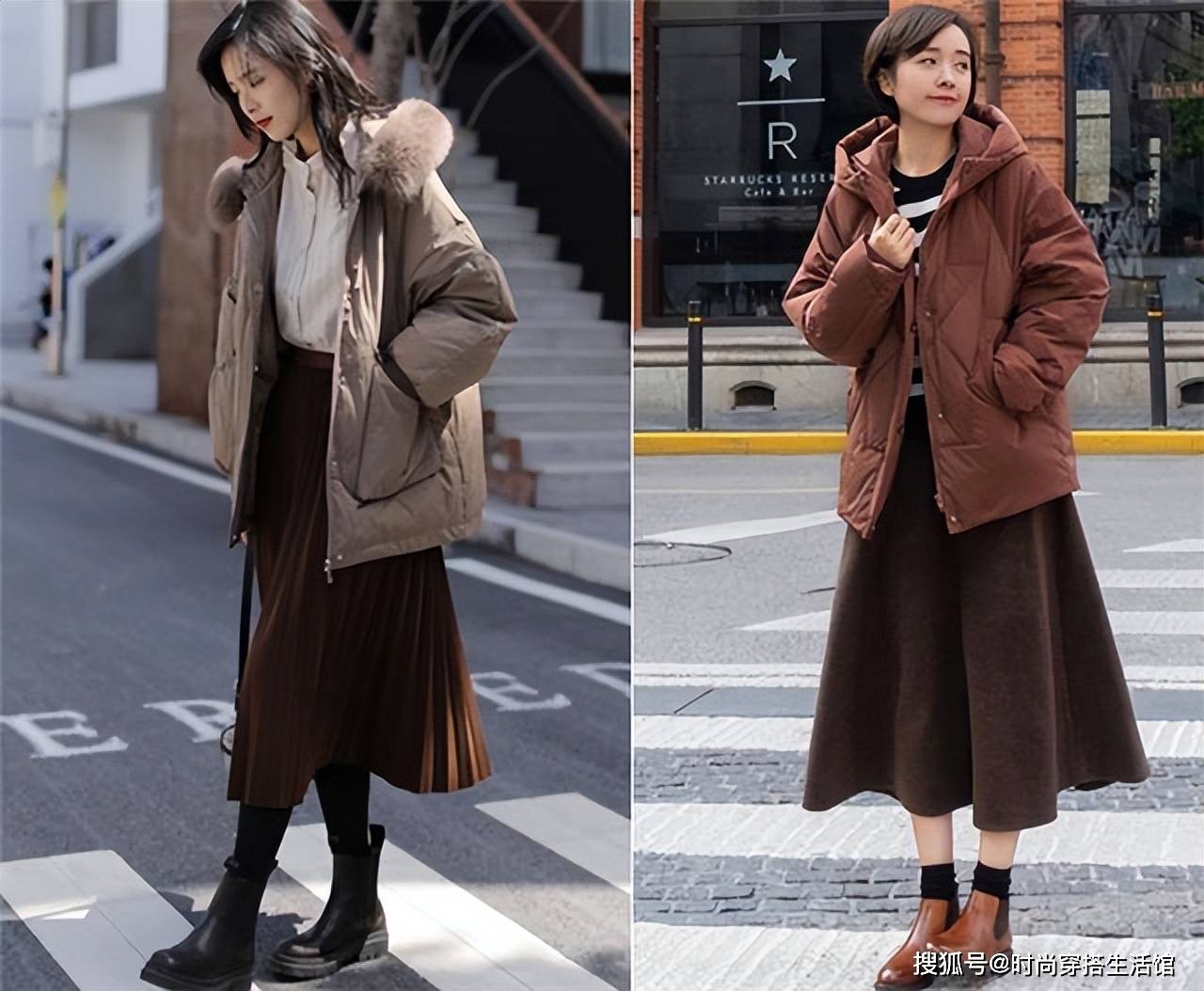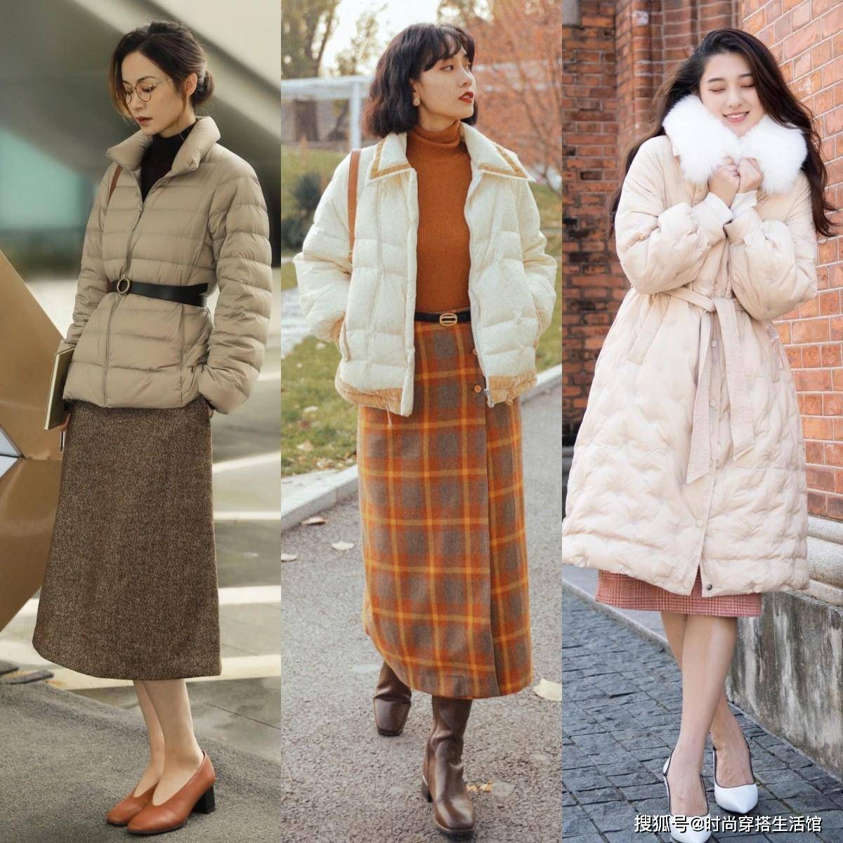 Setp2.冬天穿羽绒服不配牛仔裤,换成这些裙子才优雅