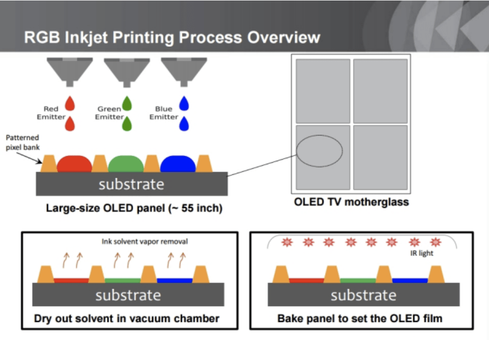 TCL计划推出的印刷式OLED面板,是真正的RGB三原色自发光的面板,所以我们也可以称之为RGB OLED面板,这和LG以及三星的OLED面板并不相同,所以会带来更好的色域以及更出色的画质效果。LG的WOLED有RGB滤光片,而三星的QD-OLED则依靠蓝色来转换,理论上它们都是不如TCL的印刷式OLED面板的。
