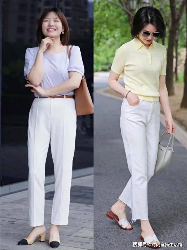 利落大方的小白裤,可以选择稍微厚实的牛仔面料。毕竟挺阔的版型,对于双腿拥有更强的修饰性。高腰的款式、九分的裤型,搭乐福鞋、及踝靴都很显气质。