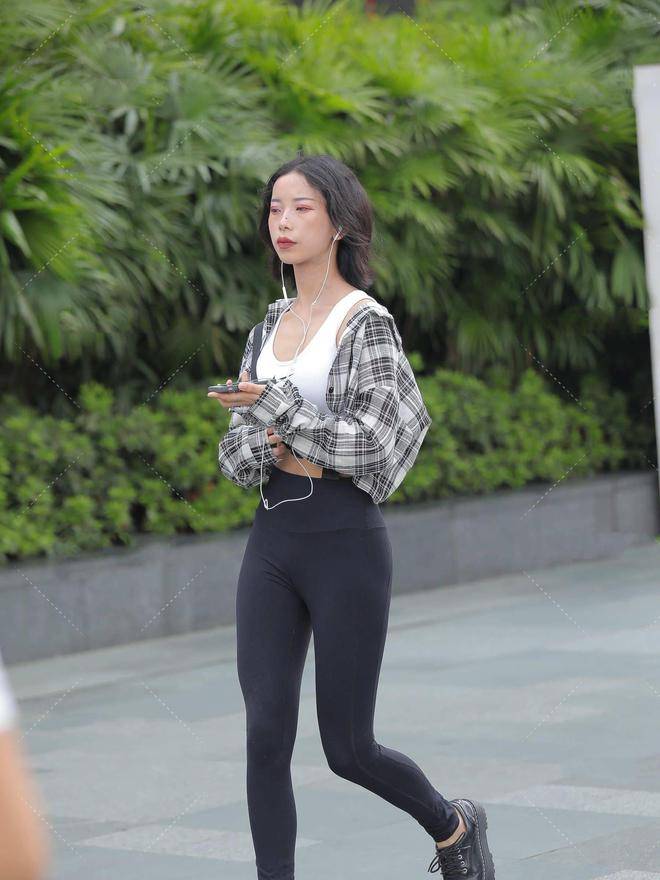 一头短发配上甜酷系妆容看上去更有气质和魅力,再配上一身时尚的穿搭让自己看起来更加有个性。一件纯白色的无袖运动背心外面套了一件格子衬衫,下面穿了一条黑色的运动打底裤,这一身搭配穿在又高又瘦的人身上看上去特别的有个性。