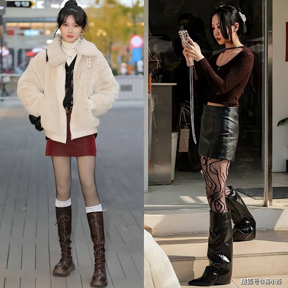 被这种冬天穿搭法惊艳!叫“靴子裹丝袜”,时髦显腿细,谁穿谁美