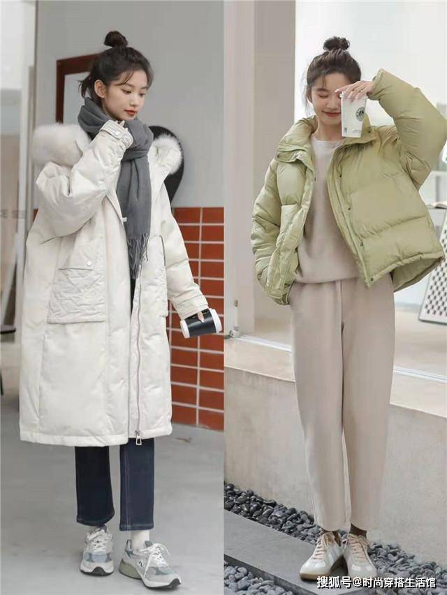 若是你入手的羽绒服长度偏长,那在搭配裙子时就要注意长短反差。要想将两件单品的优势展现出来,建议大家选择比羽绒服稍长一些的裤子与之结合。营造出“内长外短”的反差,加强层次感既能凸显裙装的优雅气息,又不会显得太过于拖沓。