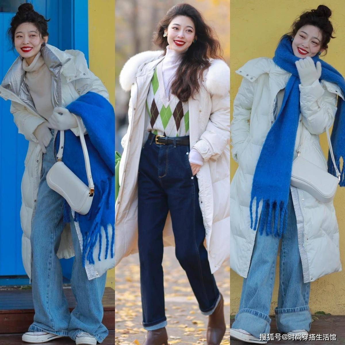 羽绒服是比较大众化的单品,而且很容易出现撞衫的情况,如果我们想要避开这种穿搭问题,最好的方法就是从细节上突破。就比如你的服装搭配比较基础简约的时候,就可以入手一些亮色系的配饰,或者是小面积的亮色点缀,比如克莱因蓝的围巾、绿色格棱的毛衣马甲,去搭配白色的长款羽绒服,也不会很单调。