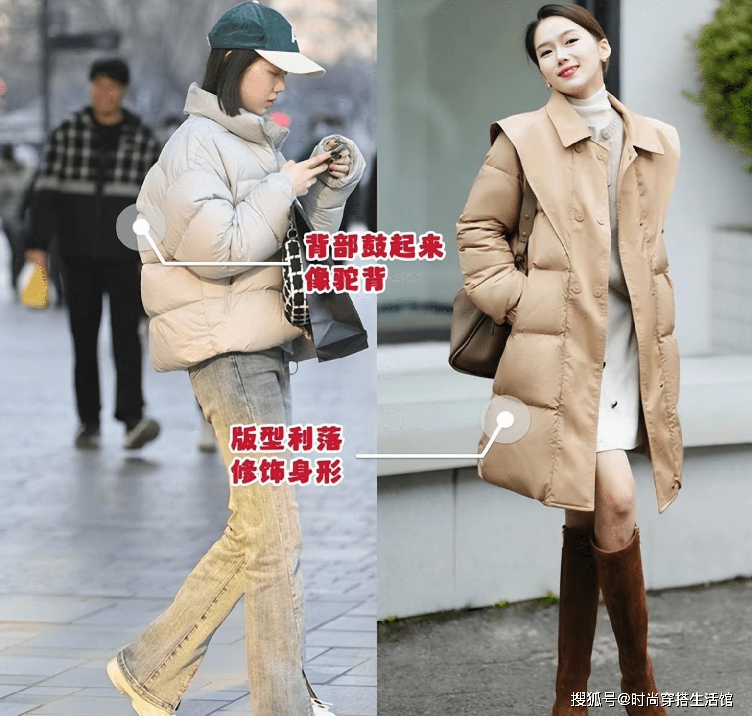 ③羽绒服短却膨胀,显得特别臃肿