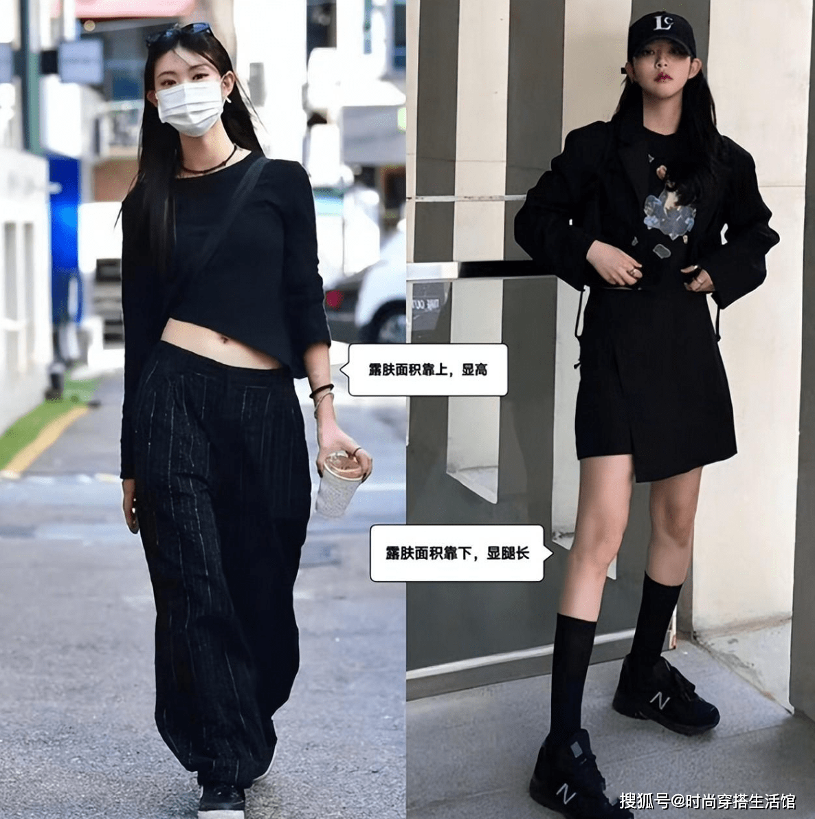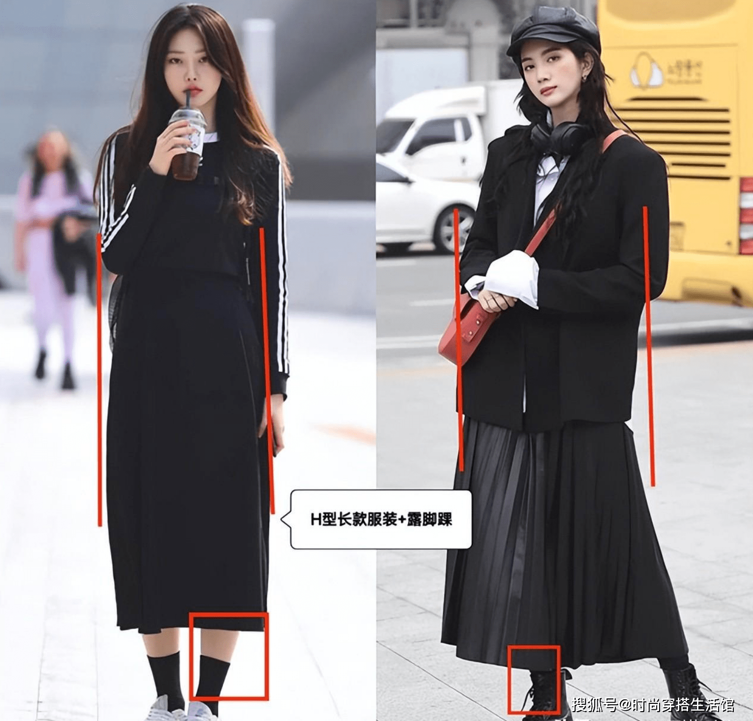裙子的长度也是值得注意的一点。无论是长裙还是半身裙,裙子的长度都不得超过脚踝,一是适度留白有利于视觉增高,二是腿部相对纤细当然得露出来,增加亮点。