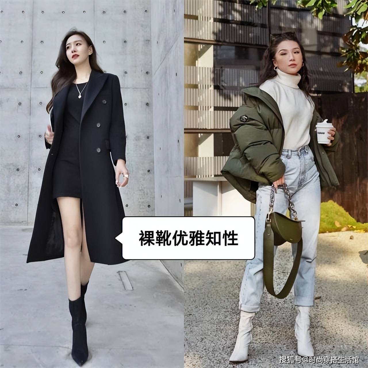 第二部分:冬天穿羽绒服除了高跟鞋,选“裸靴”替代