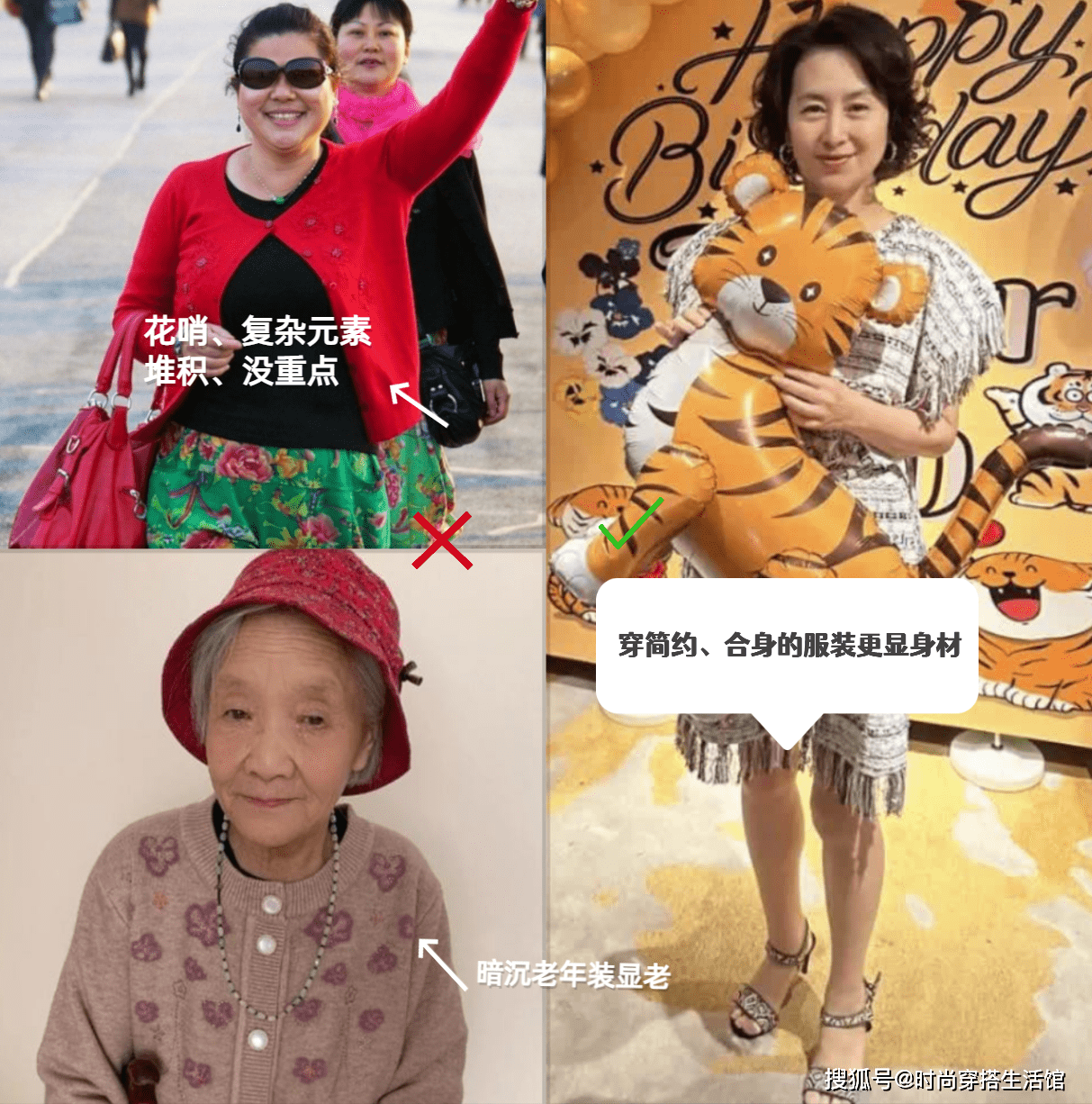 中年妈妈们还有一个常犯的错误,就是容易为了增添时尚气息,拼命往身上增加色彩或者时尚元素,这样的穿着打扮是很不得体的,并且与50岁这样的成熟气质相违背。“调色盘”系列的穿搭,可以说是与时尚毫无关系,并非常有“大妈感”的穿着了。