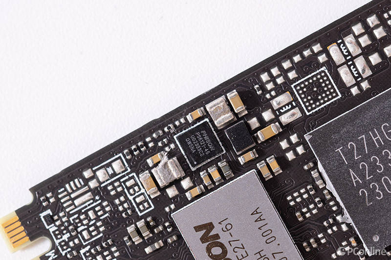 主控旁边还有颗不起眼的小芯片,它同样来自群联,型号为群联PHISON PS6121-45,是一颗PMIC电源管理芯片。