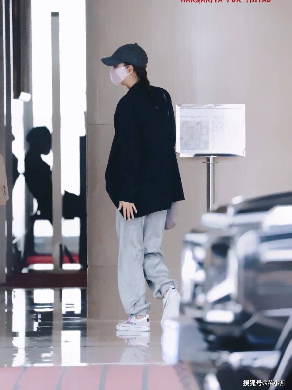 在下半身的选择上,殷桃选择了一条灰色束脚裤。这种裤子舒适度高,又具有街头潮流感,与上半身的西装形成了鲜明的对比。束脚裤的设计不仅显瘦还能凸显出腿部线条的优美,搭配一双运动鞋或休闲鞋,就能轻松打造出随性又不失时尚感的造型。这种“上身去开会,下身去运动”的穿搭方式不仅实用性强,还能让人在忙碌的生活中保持一份自在与惬意。