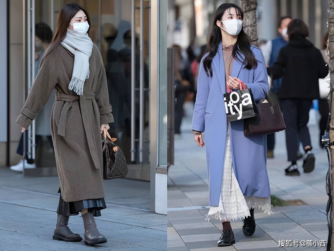 这些日本女生也特别喜欢穿大衣,而且穿大衣的时候喜欢配裙子,长裙配长款大衣,短裙配短款大衣,打造出层次感也修饰了身材。