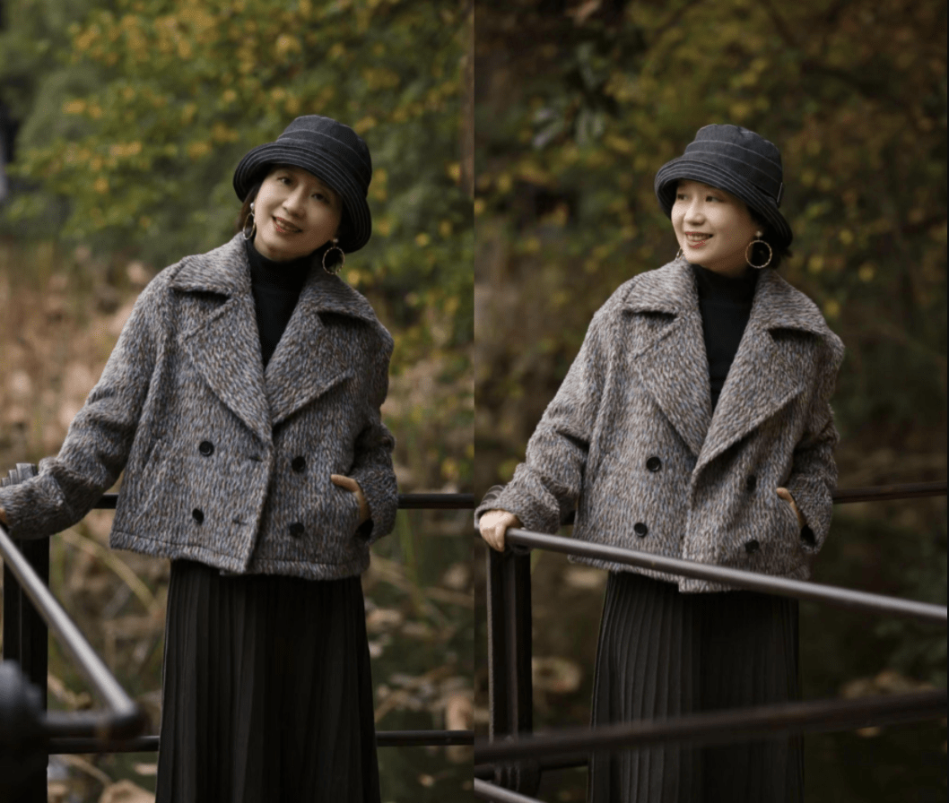 比如这件短一点的大衣,它的整体轮廓会宽松一些,让女性穿起来更加的舒服,抬手或者是有各种大幅度的动作的时候,也不会觉得束缚感太足。