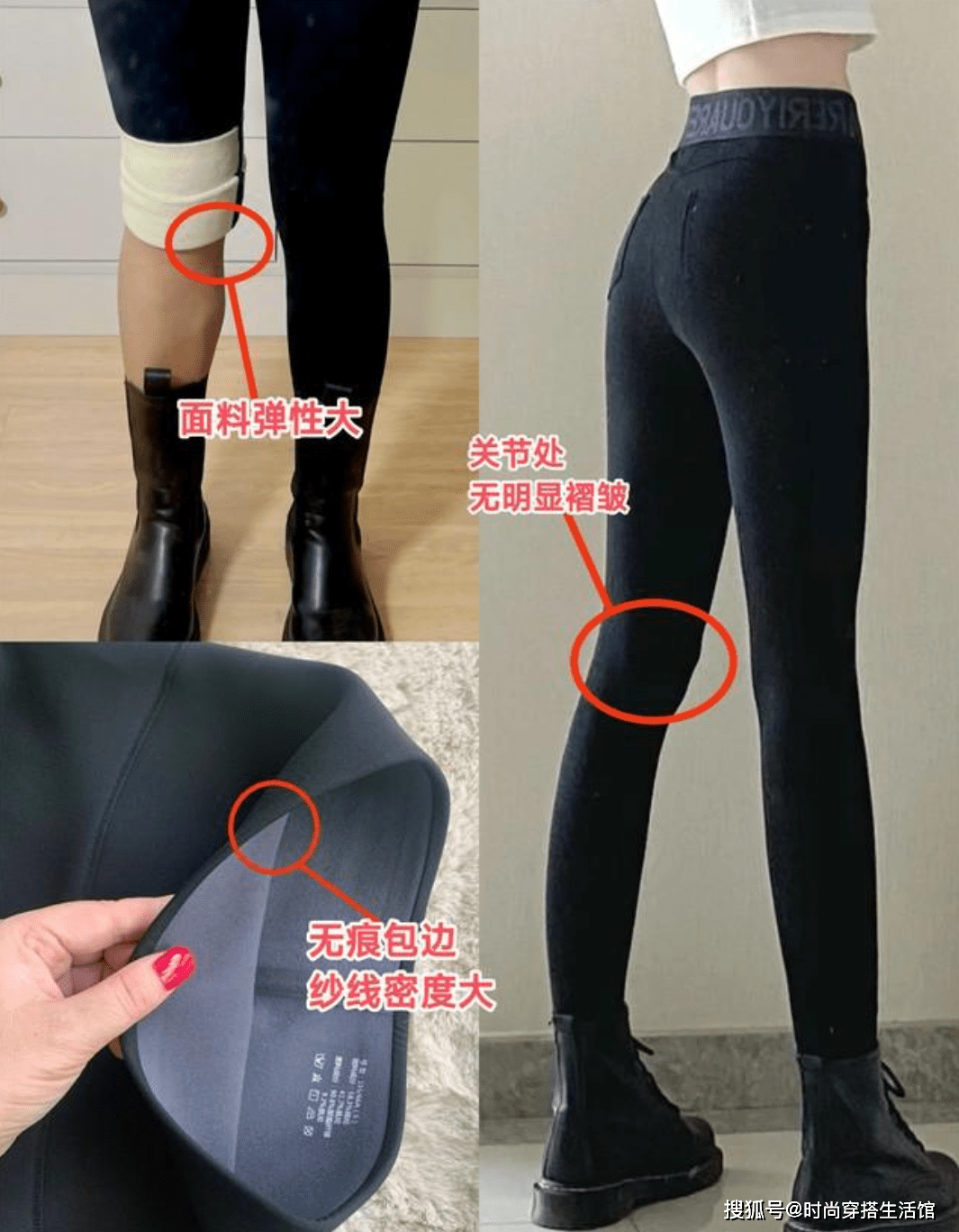 如果无痕裤太长太宽松,弹力没有非常出色,穿的时候就会在脚踝处有很明显的褶皱,看起来异常臃肿累赘,而且如果你的腿型不是非常的笔直修长或者小腿有非常明显的肉肉,也不要选择膝盖处带有褶皱的,换成弹力大且格外修身的款式,穿起来会更加时髦好看。