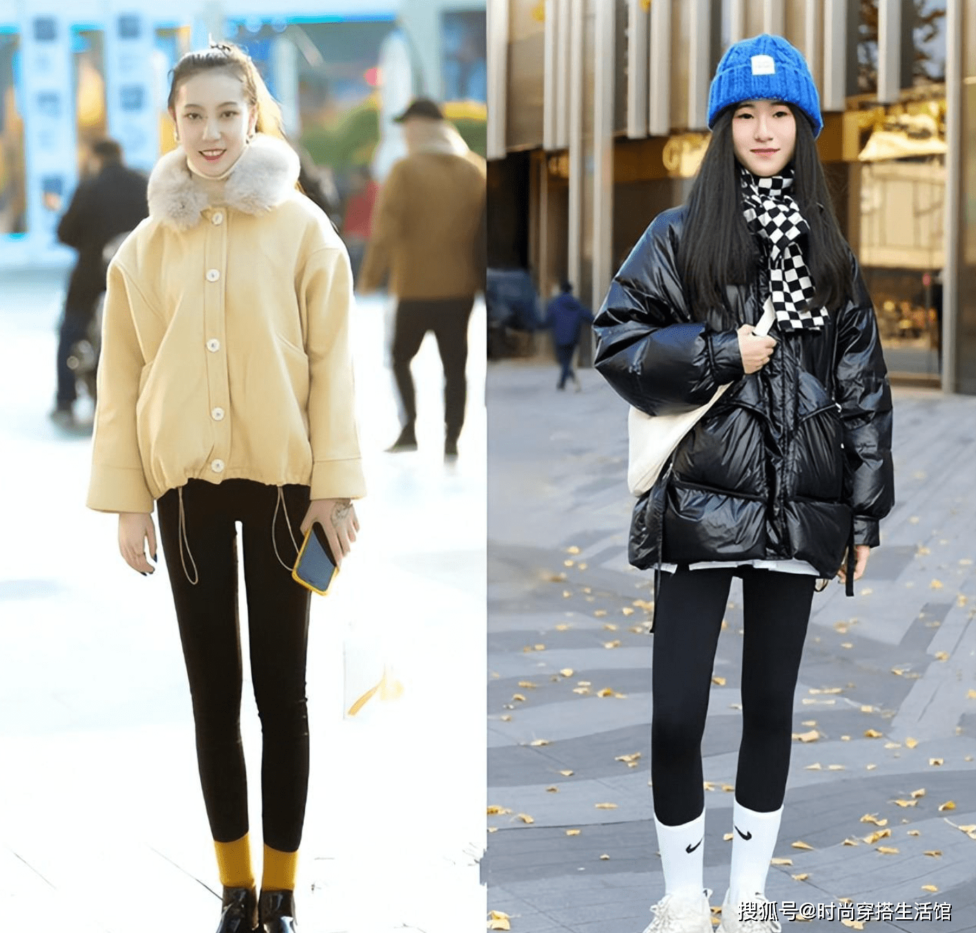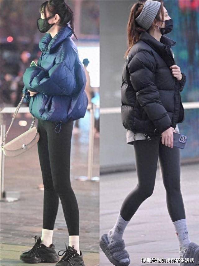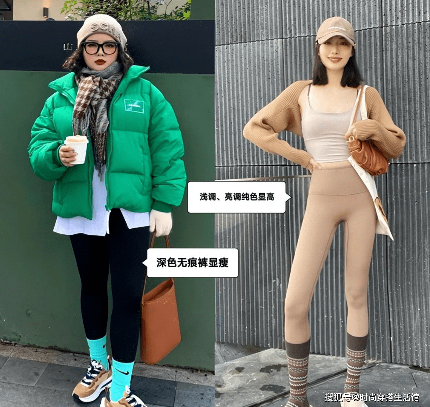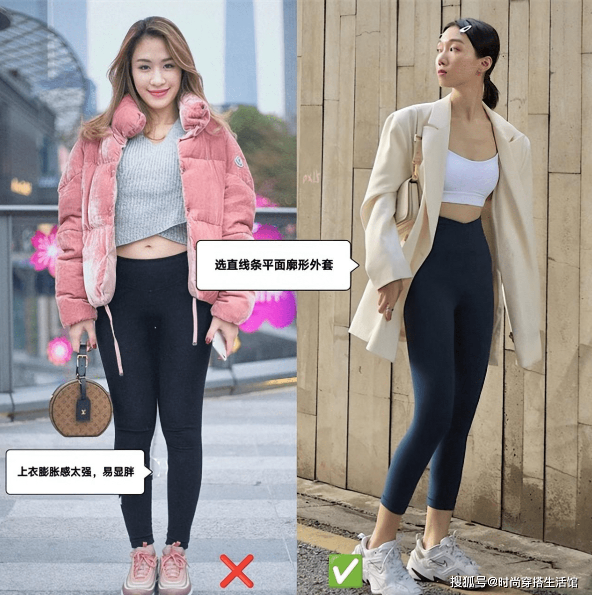 羽绒服比较宽松,能衬托下半身无痕裤穿着的修身感。腿部显得越瘦,显高拉伸的效果就会越明显。对于小个子来说,上宽下紧比上宽下松要更显高。