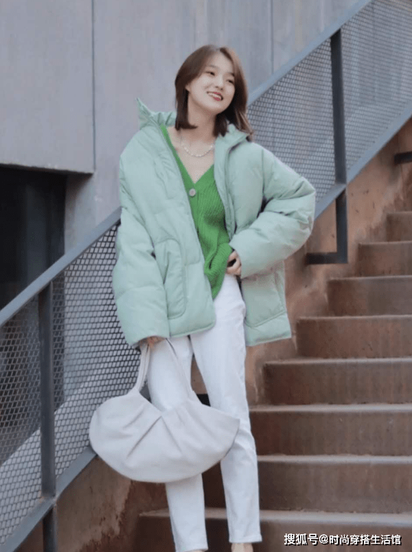 这种面包羽绒服本身就是比较容易穿出臃肿和胖的款式,但是只要你懂得花一些小心思,就可以减少这种臃肿感。例如敞开来穿,内搭进行叠穿,打底+衬衫,这样的组合可是很常见耐看的。