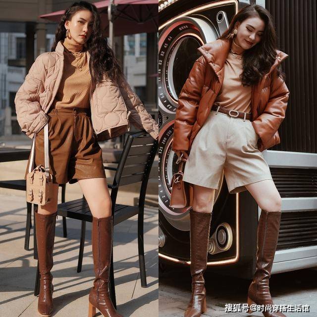 或者是搭配风格感较为稳重的颜色,比如褐色、棕色、驼色等等,用两者的色系差异来凸显出造型的层次感,适合气质相对成熟的女性。