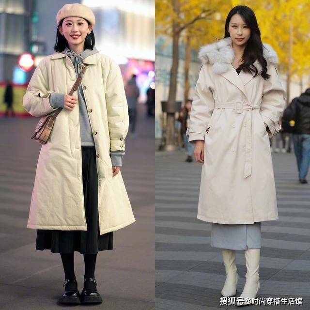 白色羽绒服很容易穿出膨胀、壮实的感觉。所以在款式挑选上要格外谨慎,如果穿短款面料尽量要轻薄高压缩,不要选面包服。长款的话要选直筒的H型,会有纵向拉伸的作用,视觉效果自然会纵向延神,显得人更高更瘦。