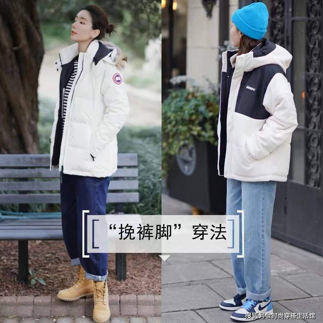 方式③挽起裤脚,这样的搭配避免裤腿太累赘