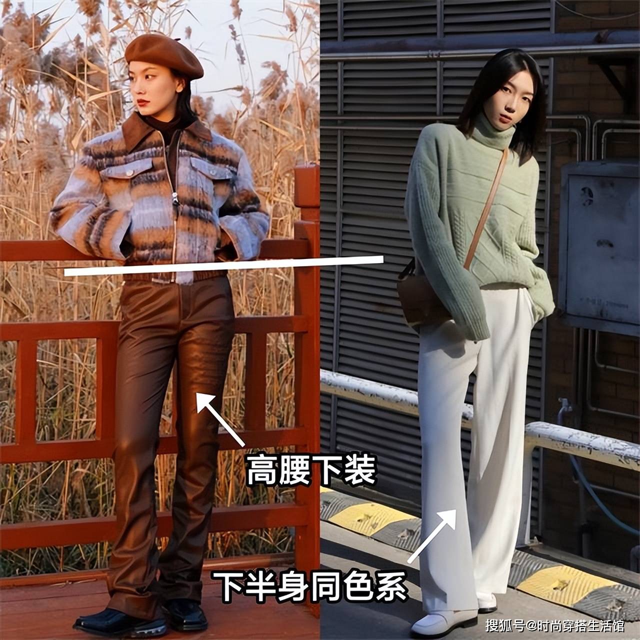 冬季选择高腰裤的主打效果是显高显腿瘦,如果上半身穿得太过臃肿,那就有可能会压低身高,从而显矮,那么显高效果自然也要大打折扣!