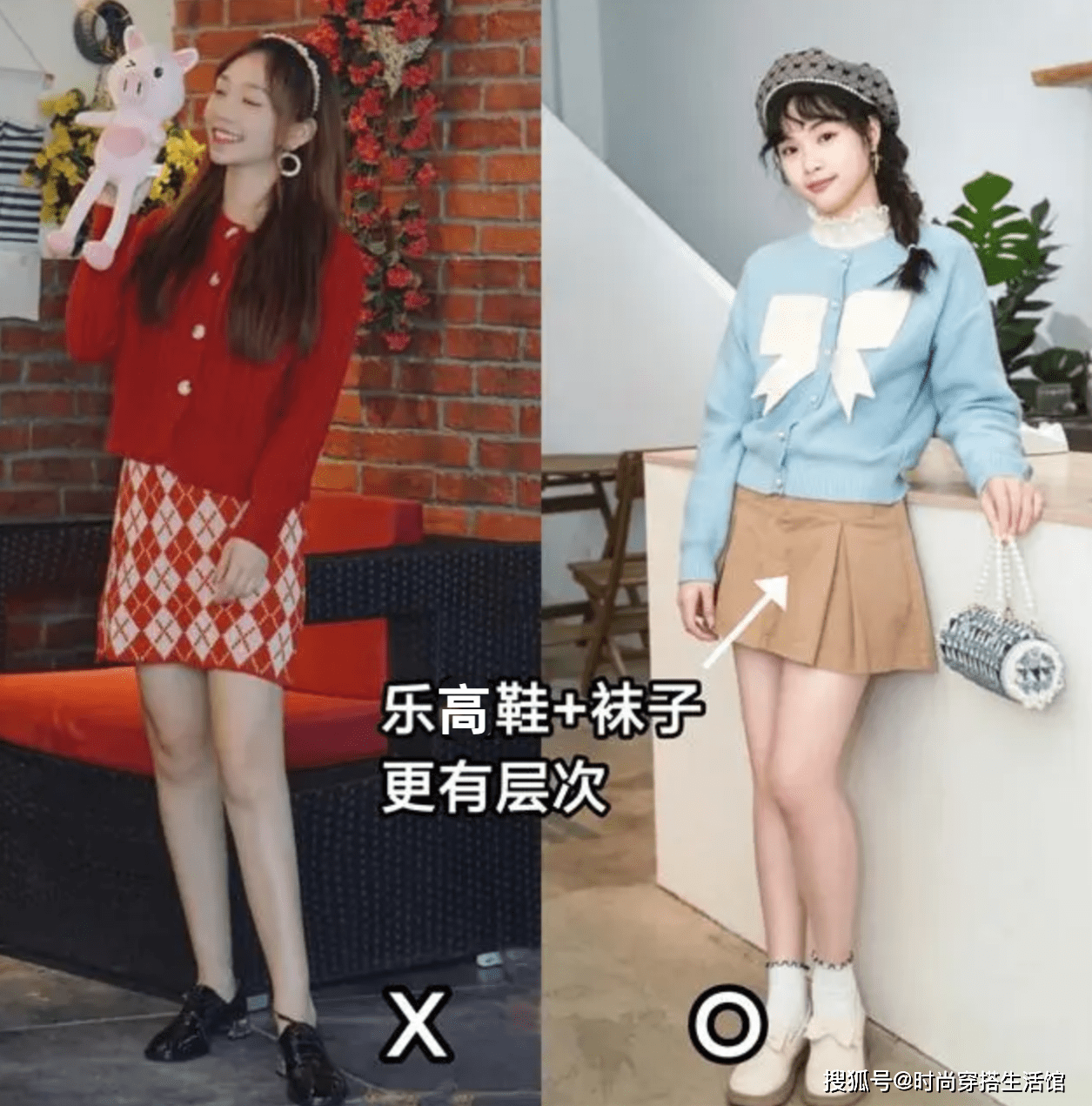 如果我们想要更加显瘦,穿着乐高鞋的时候,还是要搭配30-35cm左右的中筒袜。这样的中筒袜在膝盖附近的位置,可以拉伸双腿比例,显得更加高挑。