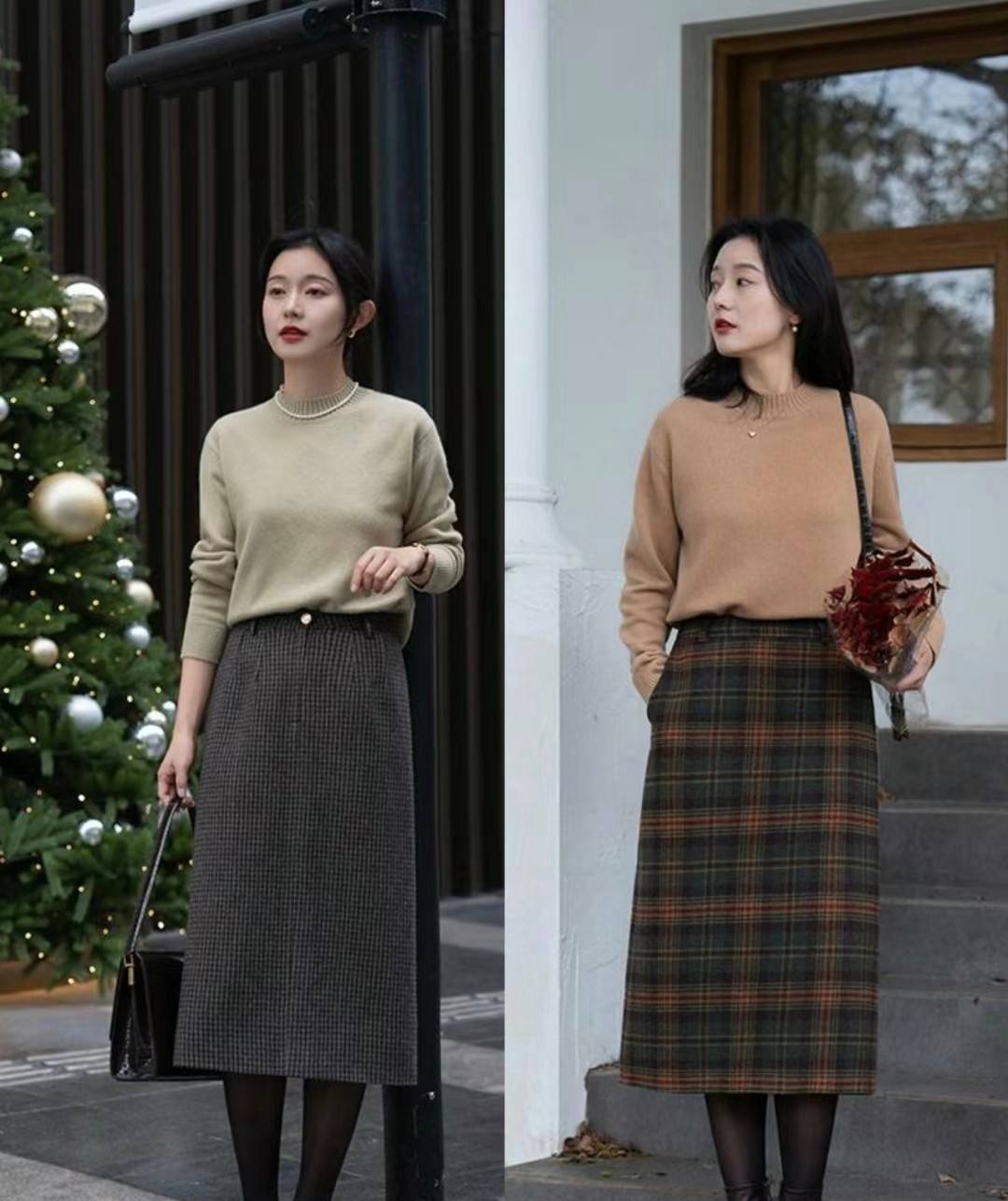 三、毛衣+半身裙