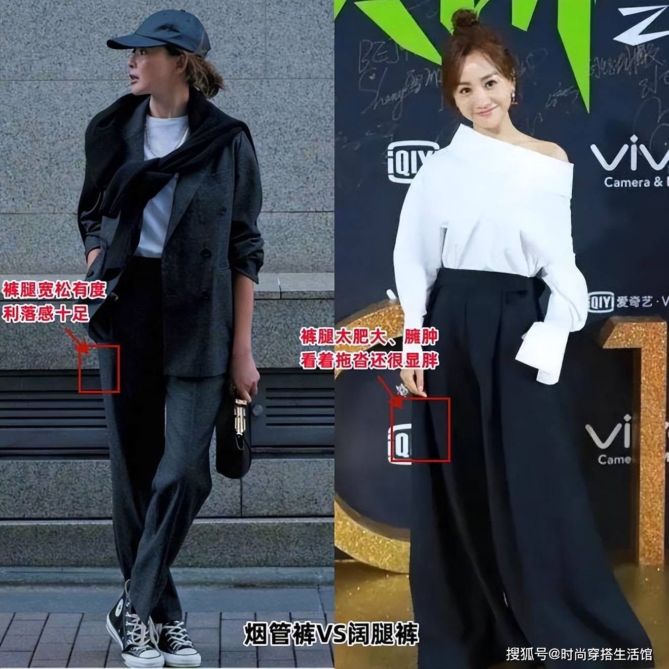 在日常生活当中,我们可挑选的裤装款式特别丰富,所以也不一定非得将重心放在阔腿裤上。阔腿裤的裤腿特别肥大,容易显得造型特别臃肿,而且长度也格外拖沓显胖,建议大家可以换成宽松有度的烟管裤,利落又显瘦。