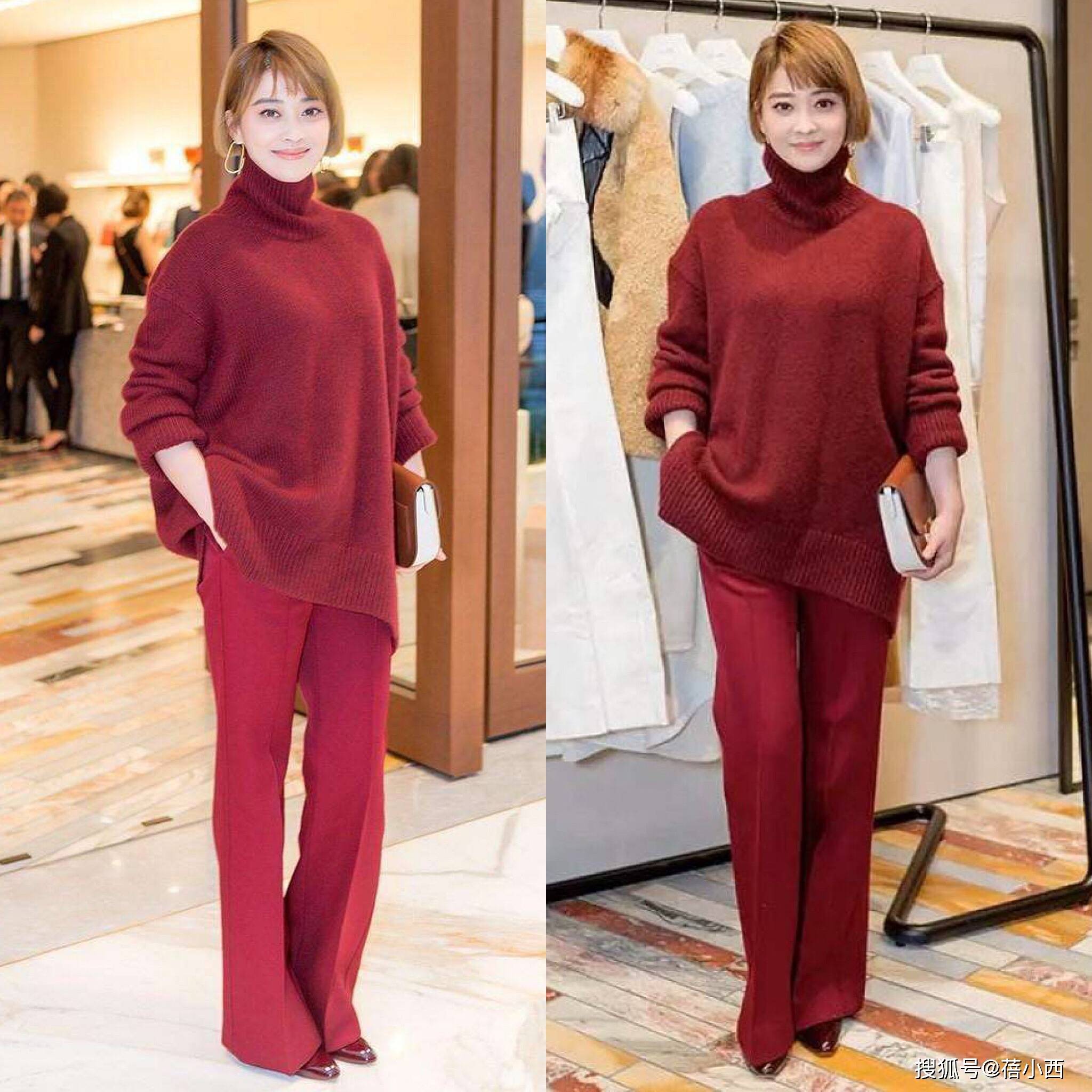 酒红色宽松毛衣+阔腿裤,复古与现代的完美碰撞