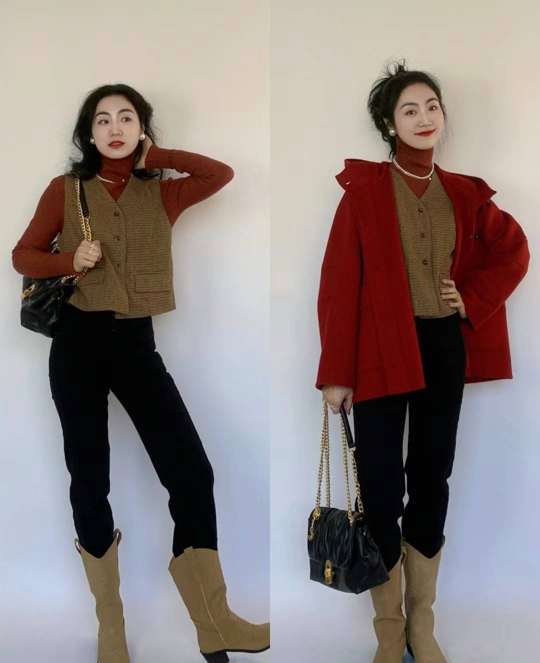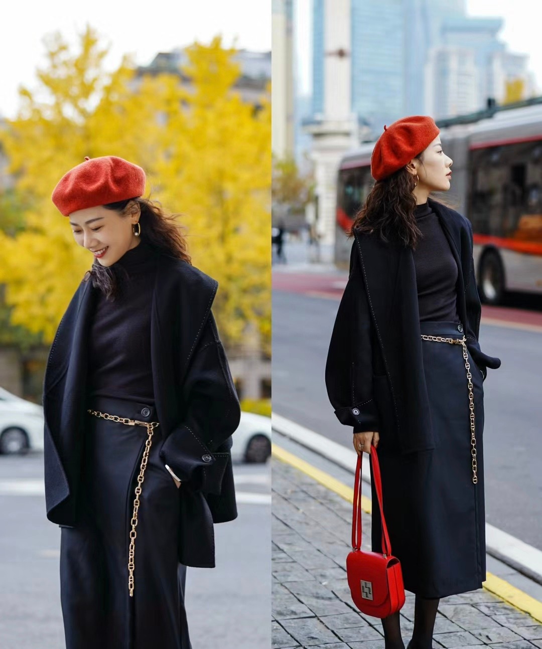 有品位的女性很少使用黑白配色,今年冬天尝试红黑配,养眼又高级