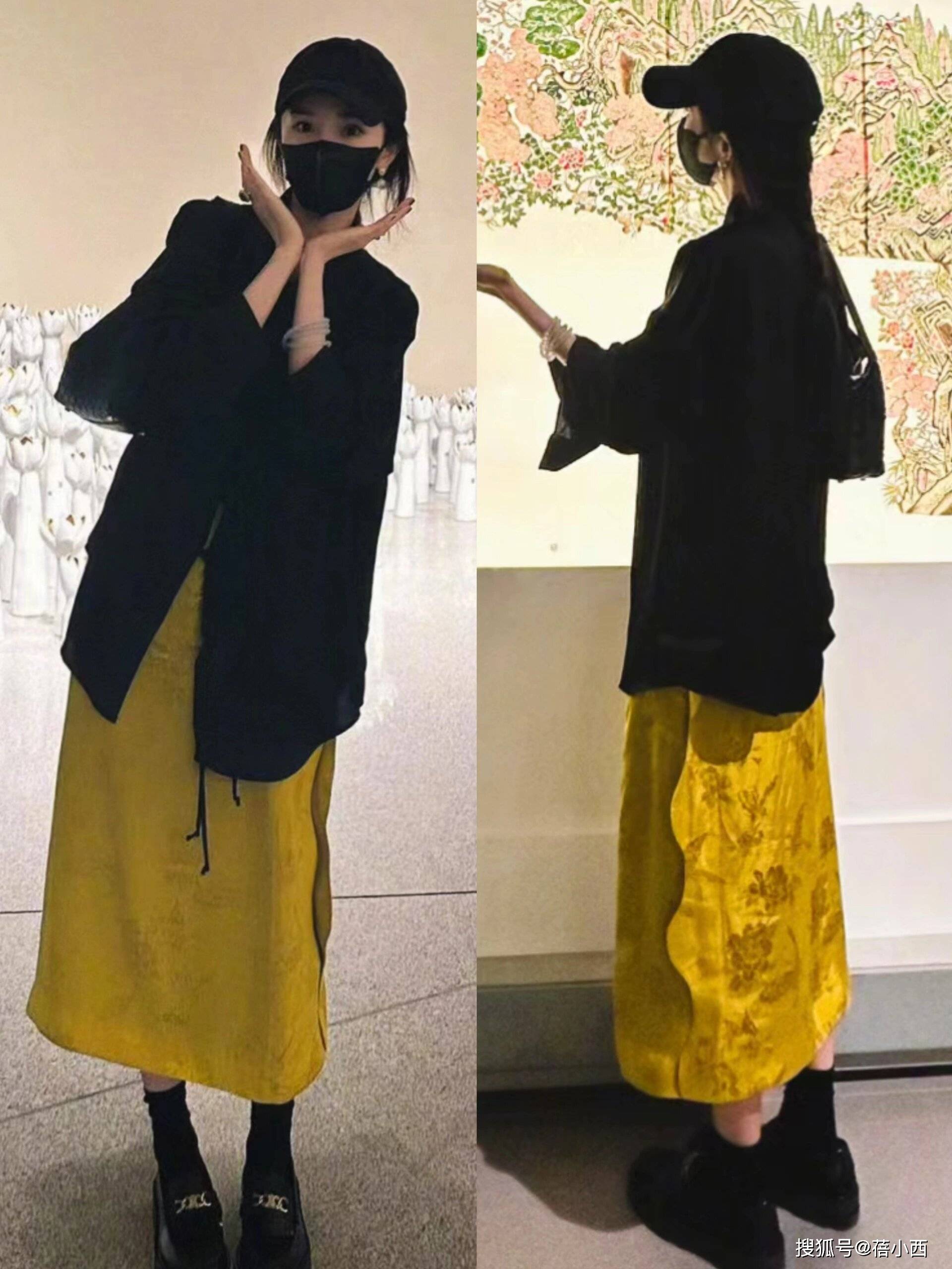 “活力满满,时尚吸睛”,杨幂的新中式黄色半身裙搭配乐福鞋,真是活力满满!明亮的黄色让人眼前一亮,乐福鞋的加入更是增添了几分时尚感。这种穿法必须get起来!