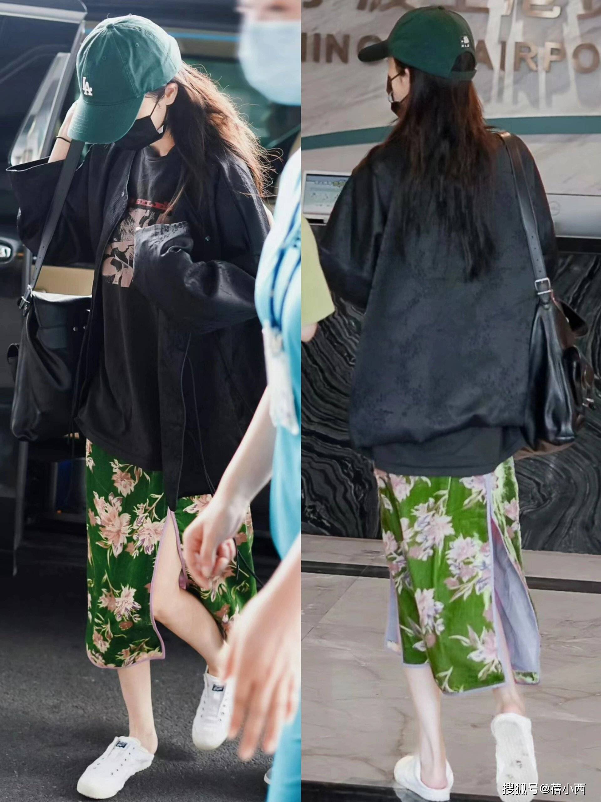 “休闲与优雅并存”,杨幂的黑色卫衣搭配绿色新中式半身裙,真是绝配!休闲的卫衣与优雅的半身裙碰撞出独特的火花,让人眼前一亮。这种新中式的穿法真是太时髦了!