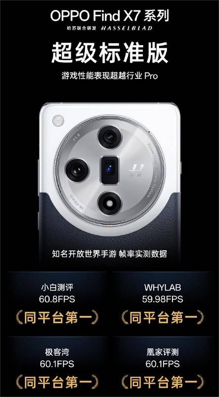 潮汐架构加持下,GPU、CPU访存效率得到极大的提升,在多个知名媒体的测试中,OPPO Find X7在知名开放世界手游帧率实测均获同平台第一的优异成绩。