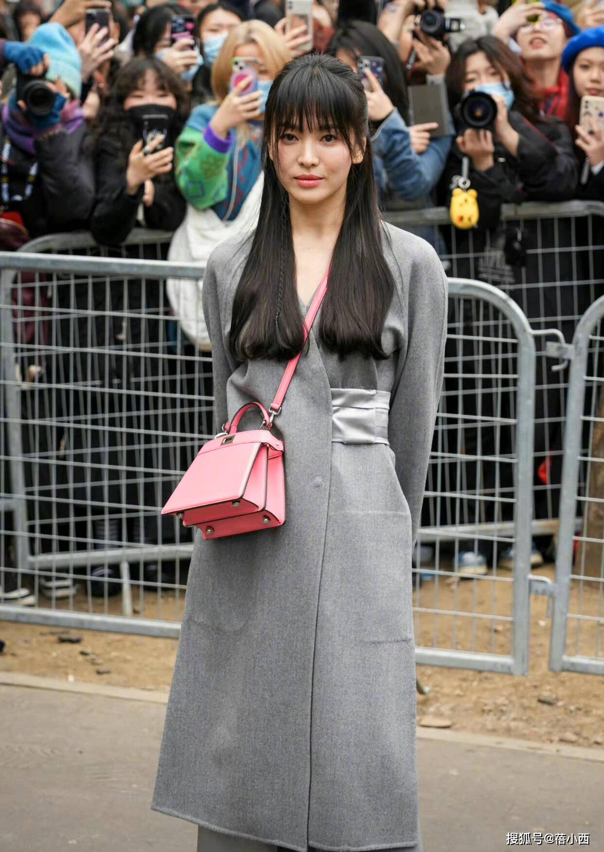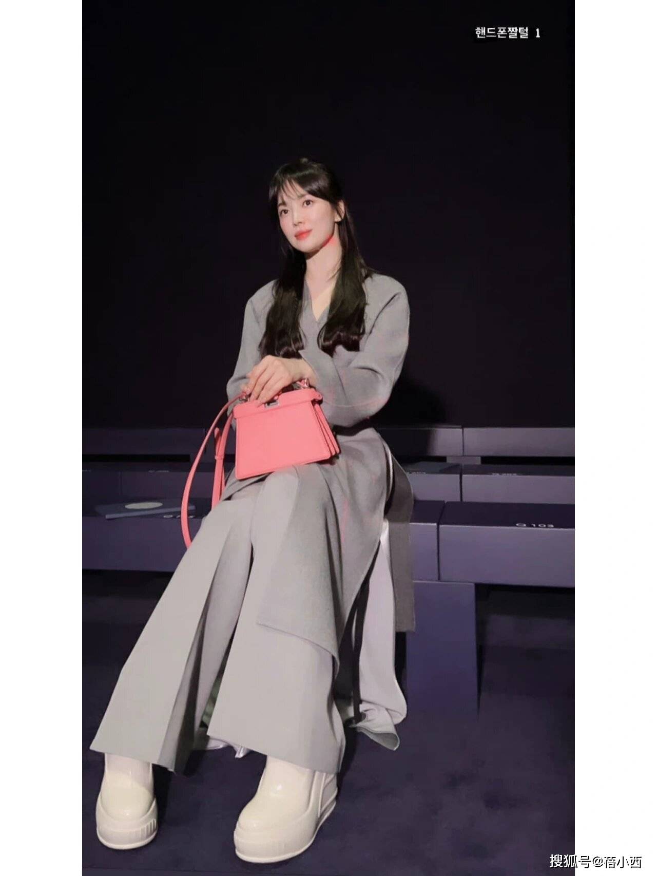 灰色,这种色彩以其独特的魅力,成为了时尚界的高级宠儿。它低调而不失优雅,简约却不失内涵。宋慧乔选择的这款灰色大衣,其简约的款式中透露出非凡的气质,仿佛每一个细节都在诉说着她的高级品味。而与之搭配的灰色阔腿裤,更是将这种气质衬托得淋漓尽致。同色系的搭配不仅让整体造型更加和谐统一,还让宋慧乔的腿部线条看起来更加修长,优雅中带着一丝随性的时尚感。